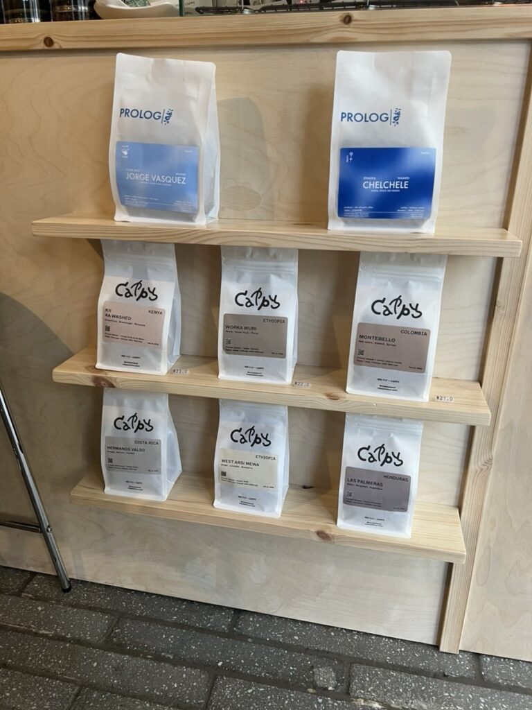 Cappy is selling coffee beans from Prologue (Danish specialty coffee) and coffee beans from Cappy