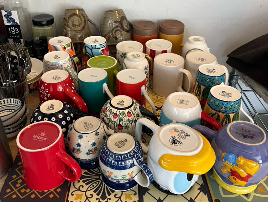 You can see various cups collected from all over the place.