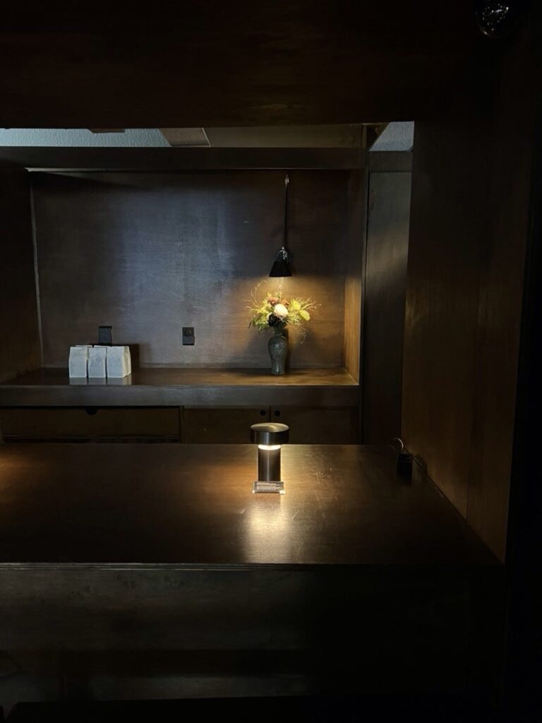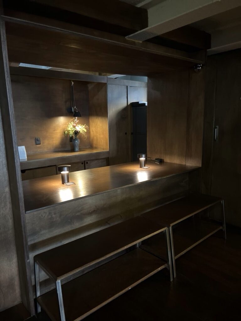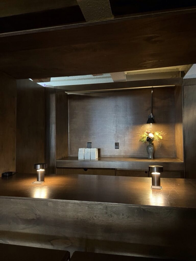 With its dim, moody lighting and warm wood accents, the space feels like a hidden hideout. It’s designed for those who want to escape the city’s hustle and immerse themselves in thought or conversation.
