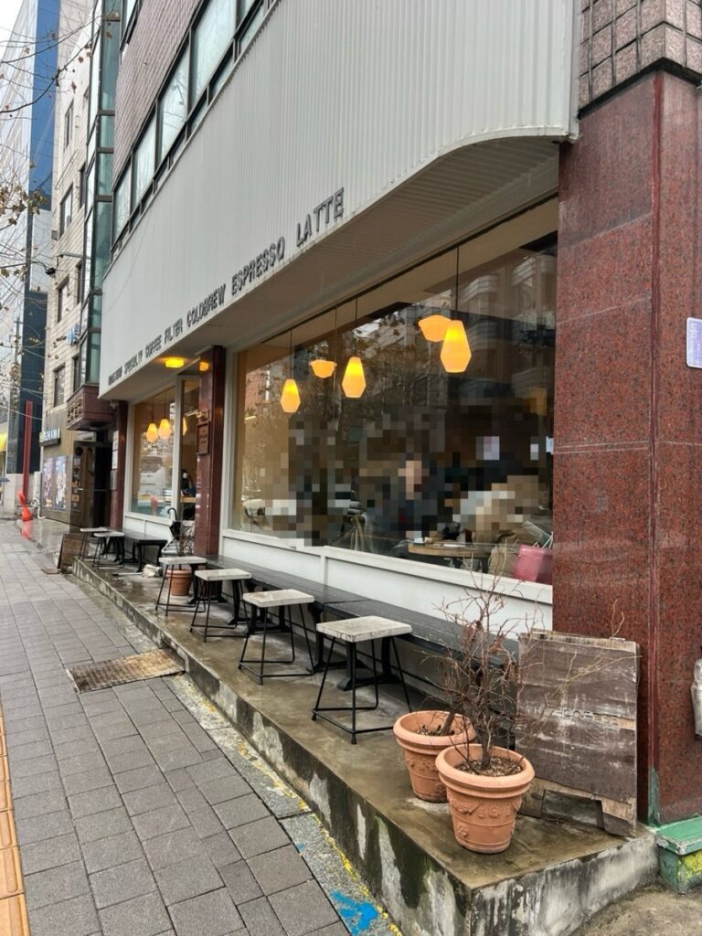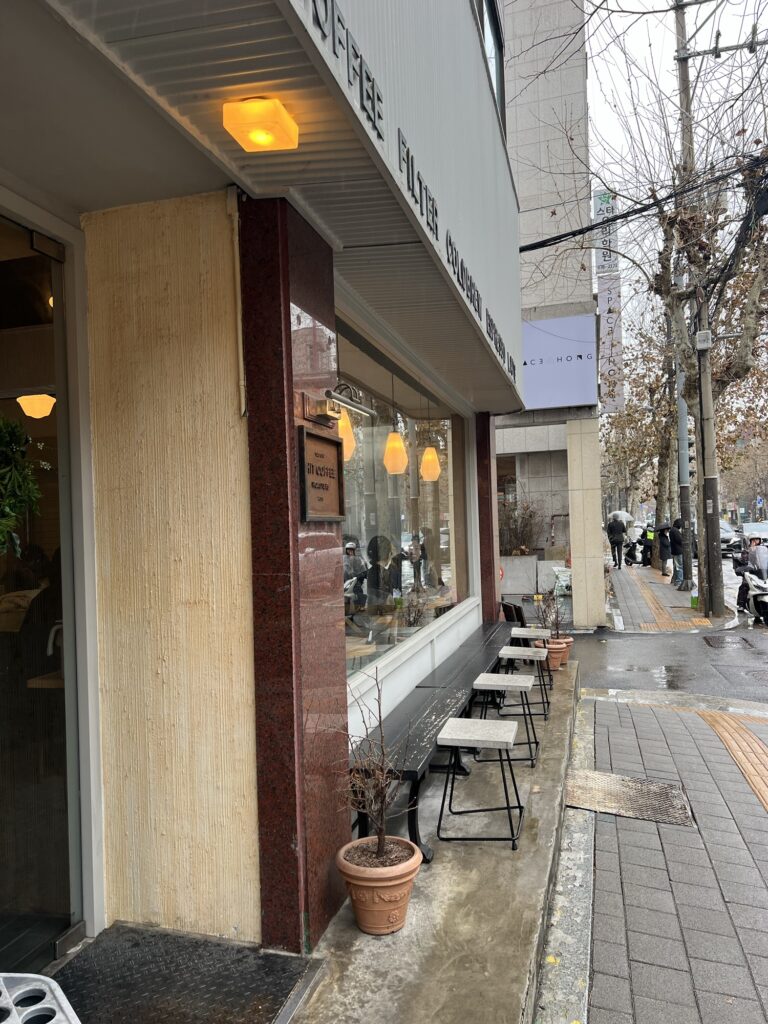 This is a famous coffee place near Hongdae Station.