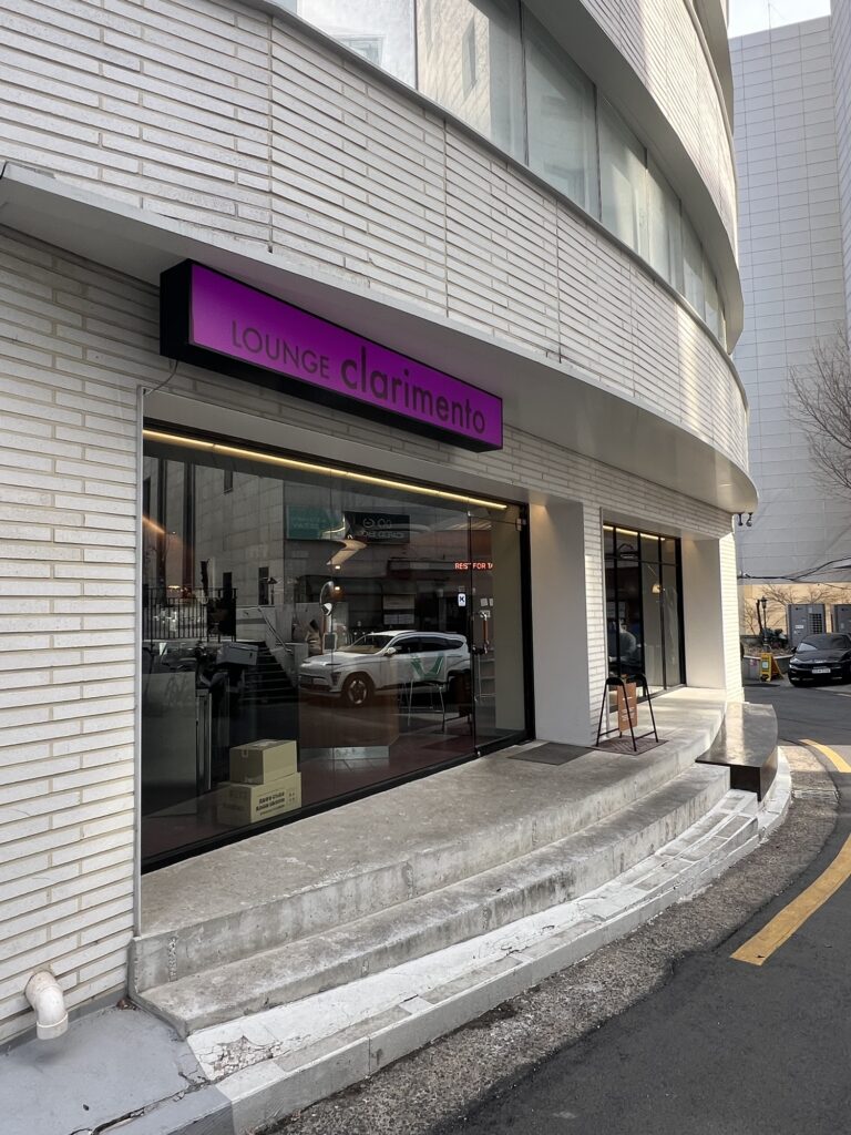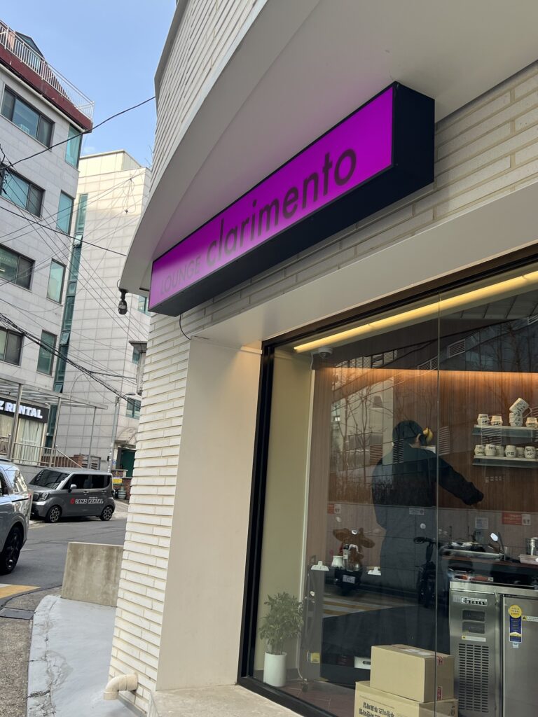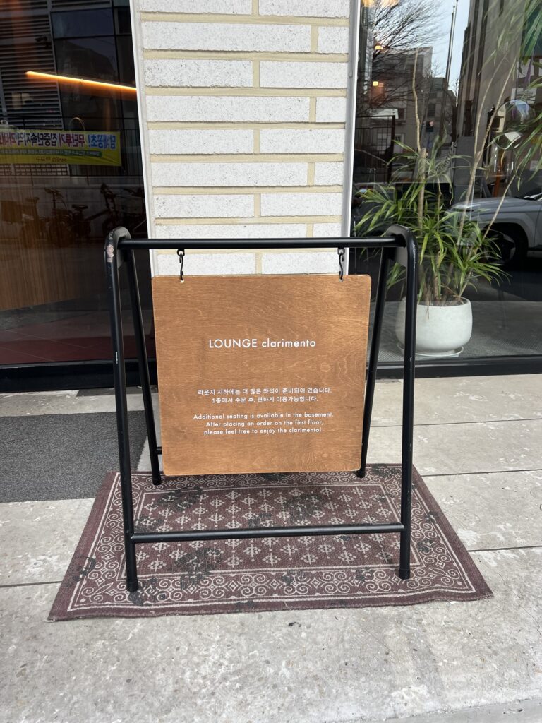 Nestled in the quiet alleys of Hapjeong-dong, Lounge Clarimento is more than just a coffee shop. It’s a space where time seems to slow down. I was immediately drawn to the sophisticated harmony of its dark wood interior and the gentle play of natural light.