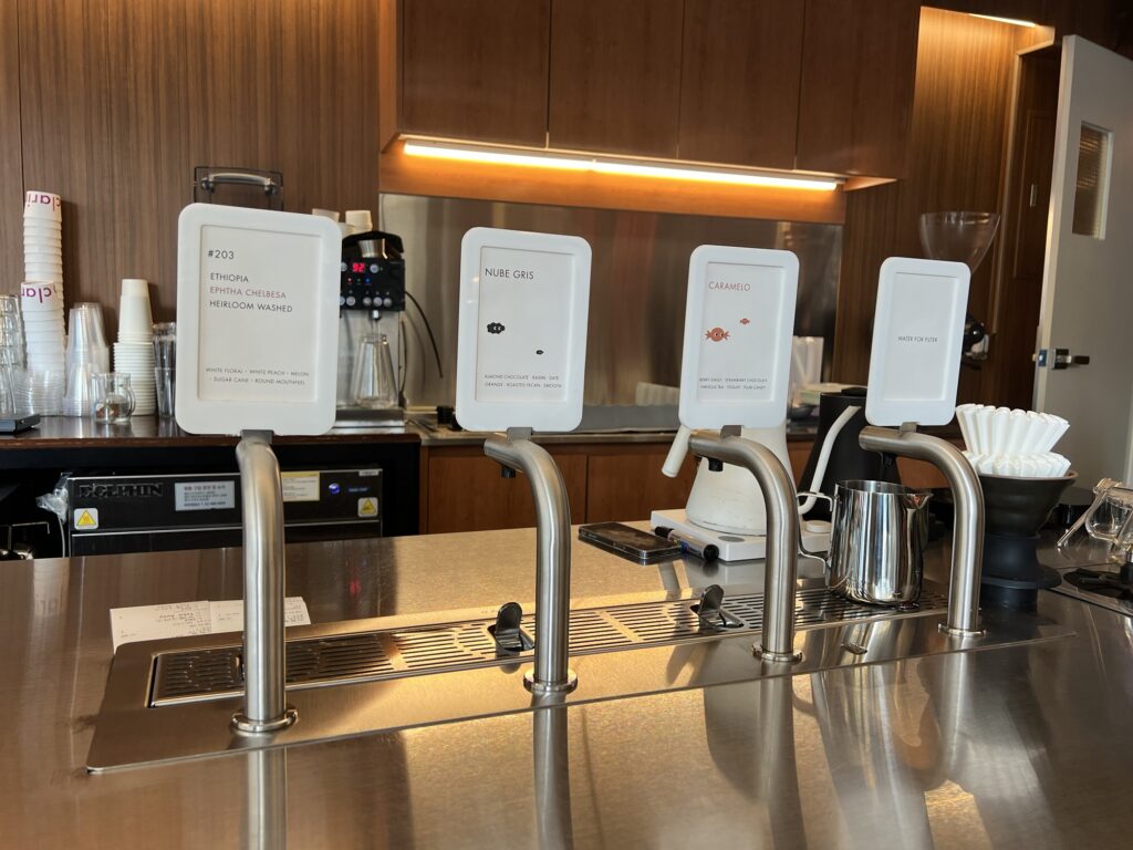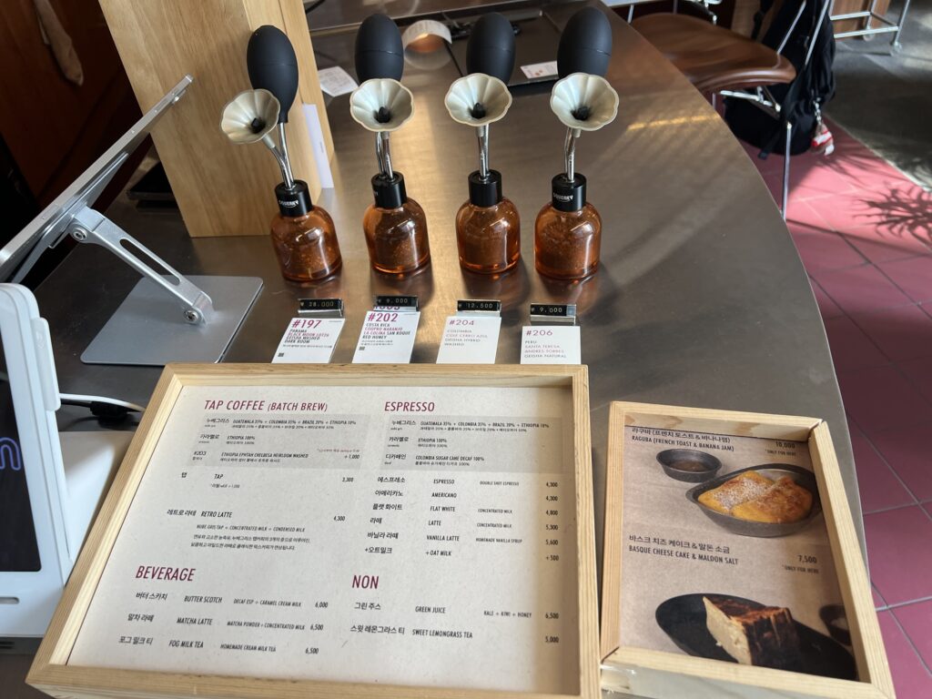 The lounge exudes a calm, almost meditative vibe. The minimalist aesthetic allows you to focus entirely on the sensory experience—the aroma of freshly roasted beans. It’s the perfect spot for those seeking a “mindful” coffee break away from the bustling streets of Hongdae.