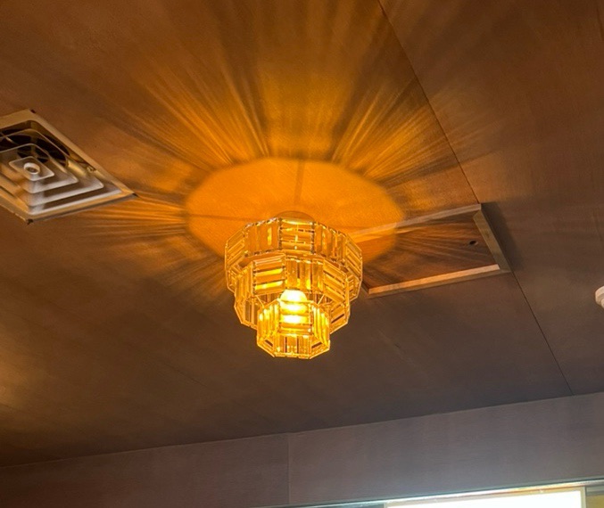 The lighting on the ceiling is like a living room light in an 80s home in Korea.